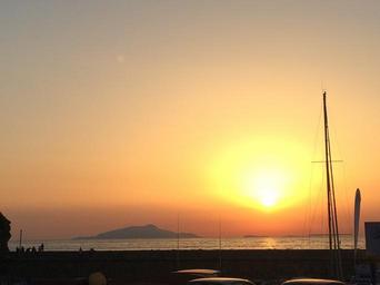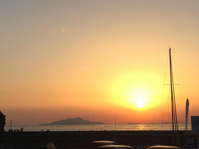 Keywords: sunset sun sea sky red clouds evening landscape holiday rays of sunshine costa atmosphere horizon island