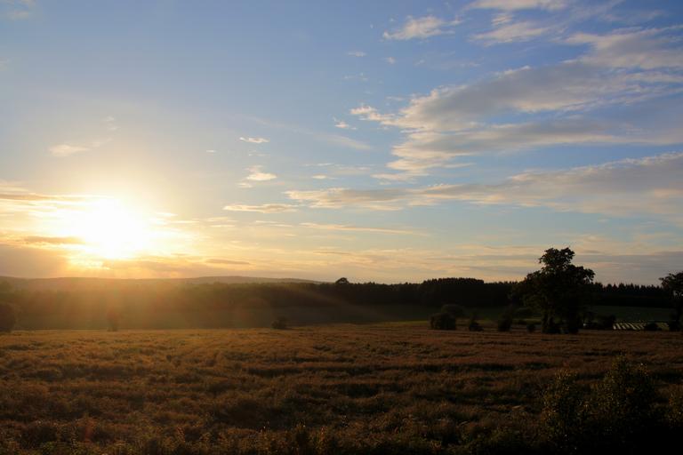 Keywords: sunset sun sunbeam abendstimmung evening sky setting sun clouds landscape