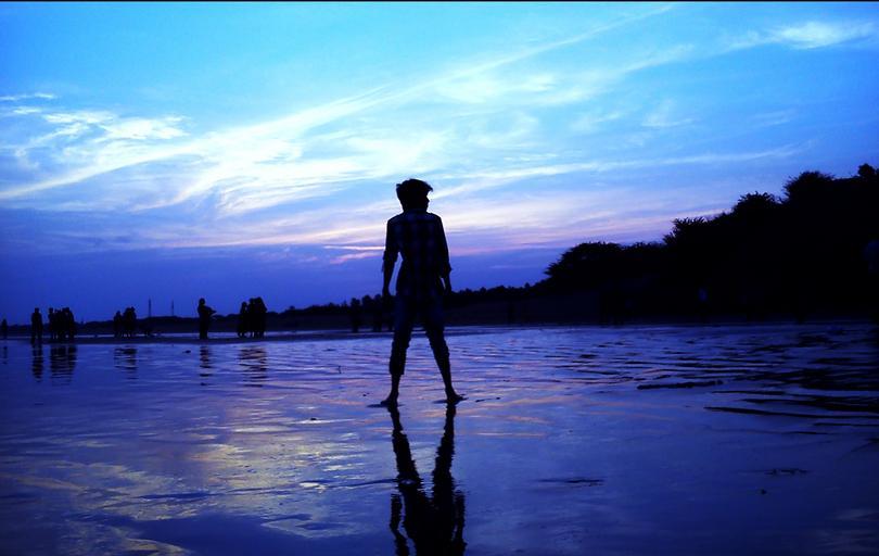 Keywords: sunset sunrise beach siluets horizon people blue sky