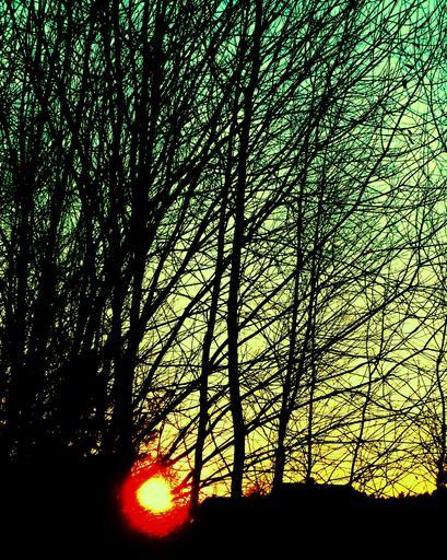 Keywords: sunset tree branches silhouette evening dusk sun nature landscape summer sunlight wood flora glowing orange