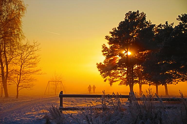 Keywords: sunset two people winter way silhouette snow frost estonia walk evening