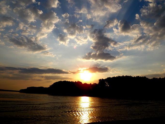 Keywords: sunset water reflection sun twilight in the evening shadow red sky