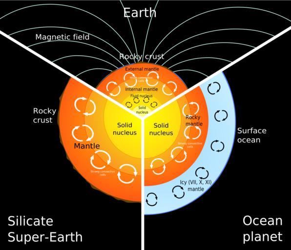 Keywords: Super-Earth internal structure.svg en Internal structure of different kinds of super-Earths compared with our planet's structure own Henrykus 2010-10-17 Exoplanet diagrams
