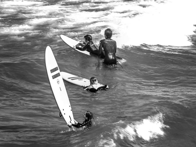 Keywords: surf summer beach sports surfer fun holiday people waves children water fellow learn
