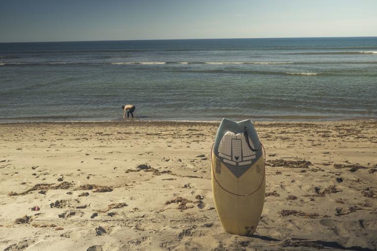 Keywords: surfboard surfing beach sand ocean sea shore waves horizon summer