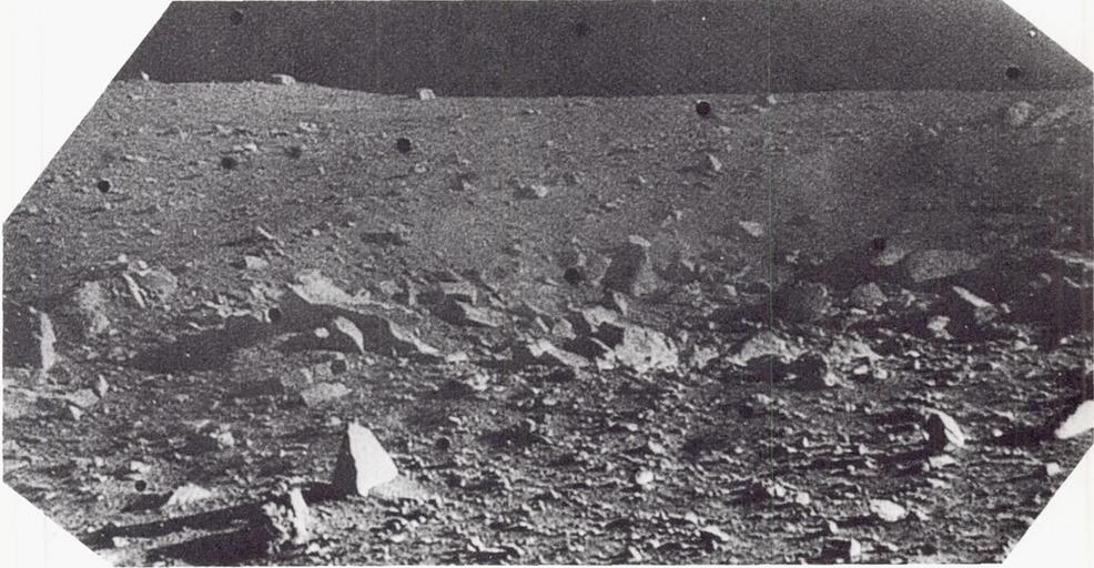Keywords: Surveyor 3 Fig 3-44.jpg Lunar surface imaged by Surveyor 3 Figure 3-44 of NASA SP-184 caption reads <br> FIGURE 3-44 -Angular blocks up to 2 meters in diameter which form part of a strewn field of blocks that surround a sharp-rim crater 13 meters in diameter near Surveyor III Apr 21 1967 05 59 43 GMT; computer processed en wikipedia original text 1 NASA SP-184 Surveyor Program Results OFFICE OF TECHNOLOGY UTILIZATION NATIONAL AERONAUTICS AND SPACE ADMINISTRATION Washington D C 1969<br/> Immediate source http //ntrs nasa gov/search jsp R 19690027073 hterms SP-184 qs N 3D0 26Ntk 3DAll 26Ntt 3DSP-184 26Ntx 3Dmode 2520matchallpartial 26Nm 3D123 7CCollection 7CNASA 2520STI 7C 7C17 7CCollection 7CNACA SP-184 1967-04-21 NASA<br/> PD-USGov Original upload log en wikipedia Surveyor+3+Fig+3-44 jpg wikitable - 2014-12-23 21 19 1868×970× 627146 bytes Jstuby Lunar surface imaged by Surveyor 3 Figure 3-44 of NASA SP-184 caption reads <br> FIGURE 3-44 -Angular blocks up to 2 meters in diameter which form part of a strewn field of blocks that surround a sharp-rim crater 1 Uncategorized 2016 May 6 |