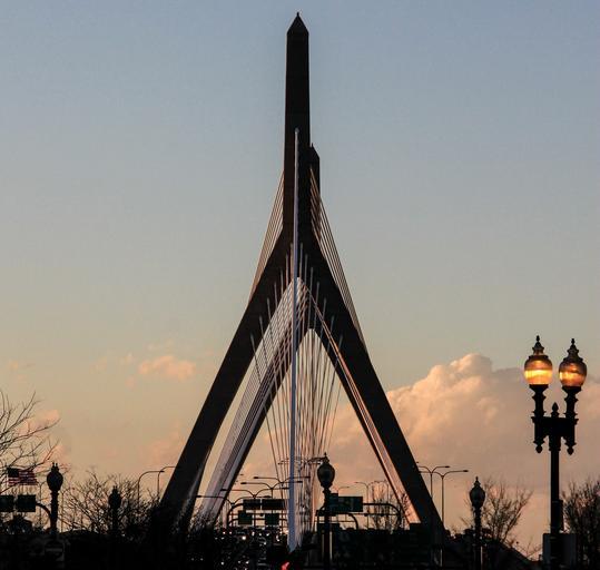 Keywords: suspension bridge boston bridge sun sunset landmark architecture