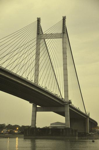 Keywords: suspension bridge cable bridge evening construction architecture bombay mumbai