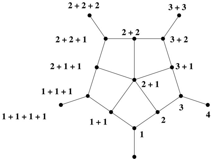 | Keywords: Suter.rotational.symmetry.svg The portion of Young's lattice lying below 1 + 1 + 1 + 1 2 + 2 + 2 3 + 3 4 displayed in a way that shows its dihedral symmetry fr Symétrie de rotation en wikipedia 2010-07-07 Michael Hardy wikipedia en Michael Hardy Original upload log page en wikipedia Suter rotational symmetry svg 2010-07-07 02 29 Michael Hardy 666×495× 6483 bytes <nowiki>The portion of Young's lattice lying below 1 + 1 + 1 + 1 2 + 2 + 2 3 + 3 4 displayed in a way that shows its dihedral symmetry </nowiki> 2010-07-07 02 14 Michael Hardy 567×486× 6679 bytes <nowiki>The portion of Young's lattice lying below 1 + 1 + 1 + 1 2 + 2 + 2 3 + 3 4 displayed in a way that shows its dihedral symmetry </nowiki> Combinatorics |