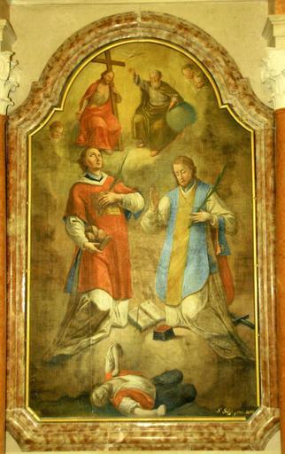 | Keywords: Sv. Štefan in sv. Valentin (Log pod Mangartom).jpg author Göetzl workshop 1844 oil canvas Log pod Mangartom church http //www logpodmangartom si/Sveti_Stefan php non-free frame 3824 PD-old-100 1844 paintings in Slovenia Paintings by unknown painters in Slovenia 19th-century oil on canvas paintings in Slovenia 19th-century religious paintings in Slovenia Paintings of Saint Stephen in Slovenia Paintings of Saint Valentine in Slovenia Altar paintings in Slovenia St Stephen's Parish Church Log pod Mangartom |