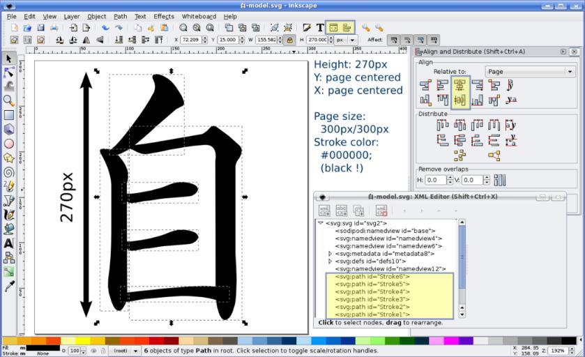 | Keywords: SVG Stroke order-01.svg Explicite screenshot to show how should be coded SVG Stroke order files ;Tutorial Naming 自-model svg if 2nd way 自-tmodel svg ; 自-jmodel svg Doc size 300px/300px Font to user Kaishu style ; Hanzi height 270px Hanzi is page centered Then the editing work Redraw each stroke ; Naming 1st stroke is rename Stroke01 etc Level In the SVG code the 1st stroke is on the bottom of the code etc as visible enlighten in yellow own see upload date Myself + Inkscape authors free screenshot GPL Yug 自 132 0 s |