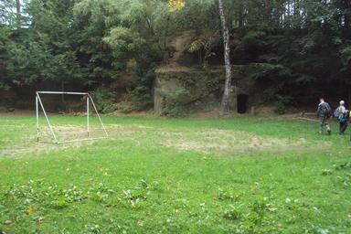 Keywords: Svor hřiště.JPG cs Součástí areálu koupaliště je i hřiště na straně je hradba skal se dvěma sklepy own Zákupák 2013-09-14 Areál koupaliště Svor