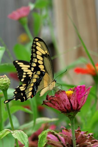 Keywords: swallowtail butterfly zinnia nature insect natural flower fauna garden flora macro wing summer close petal wildlife fly