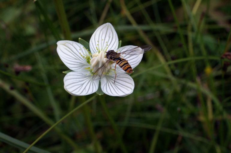 Keywords: swamp sweetheart parnassia palustris blossom bloom close hoverfly plant flower white