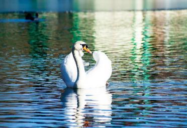 Keywords: swan bird water pond swim beautiful white graceful nature animal bill wing lake wild elegant plumage romantic love summer light sun luck sunshine happy joy