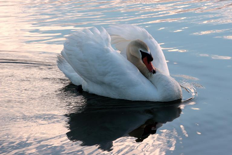 Keywords: swan mute swan cygnus olor head close water bird white elegant swim water pride lake waters wildlife photography beauty nature abendstimmung sunset