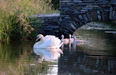 Keywords: swan mute swan cygnus olor chicks water bird white elegant swim water pride lake waters wildlife photography beauty bridge nature abendstimmung sunset