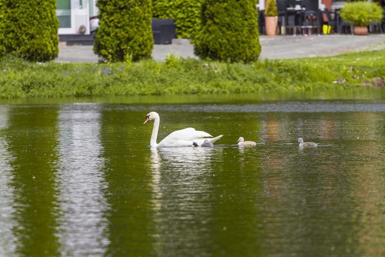Keywords: swan pond water lake bird nature animal white swim beautiful swans bill graceful elegant animal world waters feather water bird park happy waterfowl romantic ducks