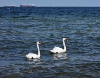 Keywords: swan sea ship the coast the baltic sea landscape birds swimming holidays waves