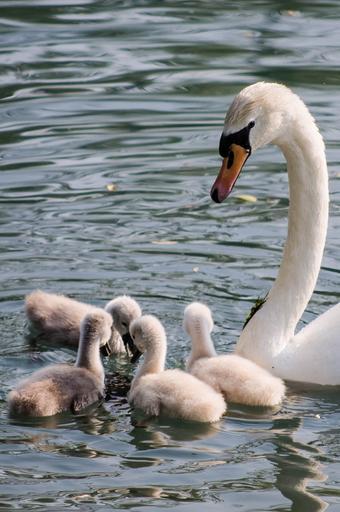 Keywords: swan water chicks family