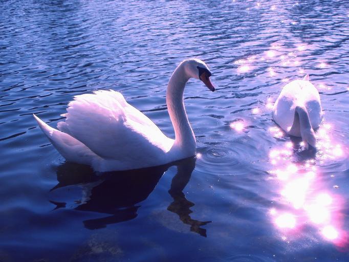 Keywords: swans birds lake water close-up macro blue reflections sparkle sunlight nature outside beautiful