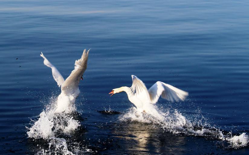 Keywords: swans departure start dispute attack water lake constance rorschach switzerland