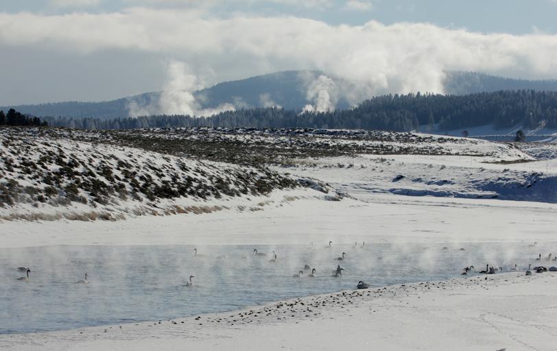 MAKE A MEME View Large Image yellowstone yellowstone national park yellowstonenationalpark birds waterfowl outdoor snow Swans and geese in the Yellowstone River in Hayden Valley; Diane Renkin; December 2015; Catalog #20400d; Original #IMG_0211 Swans and geese in the ...