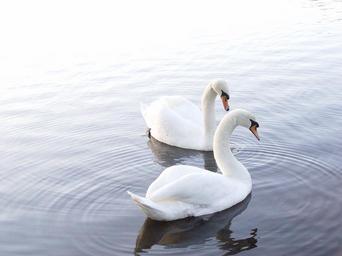 Keywords: swans lake nature water bird white wildlife animal reflection calm tranquil peaceful feather beak wing morning scenic ripple graceful