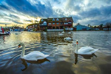 Keywords: swans wroxham england river nature sunset winter