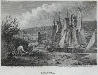 Keywords: Swansea (1131003).jpg Abstract A view of shipwrights working on the quayside with a large sailing ship on the periphery A castle can also be seen in the background Size mm 184 165 exhibition history Institution National Library of Wales Technique print engraving/etching bw object history object type CC-zero place of creation place of discovery 1131003 Swansea 1131003 Uploaded with GWToolset Swansea 1131003 http //dams llgc org uk/iiif/test/2 0/image/1131003/full/1000 /0/default jpg Welsh Landscape Collection Images uploaded as part of NLW - WMUK collaboration Swansea in art Ships in art of the United Kingdom 1797 engravings |