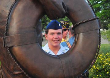 Keywords: Swartz Creek Veteran's Memorial DVIDS1118756.jpg en SWARTZ CREEK Mich - Petty Officer 1st Class April Caverly of Coast Guard Air Station Traverse City Mich the model for a statue honoring the Coast Guard at the Swartz Creek Area Veteran's Memorial looks through the throwable PFD held by the bronze figure during the statue' s dedication June 14 2012 The 550-pound Coast Guard statue was the last of five installed at the monument which was paid for entirely by small donations from hundreds of members of the community over the last six years U S Coast Guard photo by Chief Petty Officer John Masson 2012-06-15 Chief Petty Officer John Masson https //www dvidshub net/image/1118756 1118756 2013-12-12 22 01 SWARTZ CREEK MI US PD-USGov CGAS Traverse City Images from DoD uploaded by Fæ |