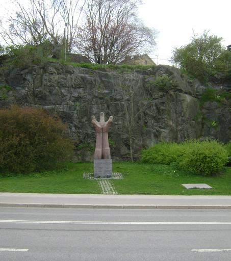Keywords: Sweden. Stockholm. Södermalm 005.JPG en La Mano monument over Swedish volunteers who died in the Spanish Civil War By sculptor Liss Eriksson Sweden Stockholm Södermalm own Albertyanks - Albert Jankowski La mano sculpture 2010 in Södermalm