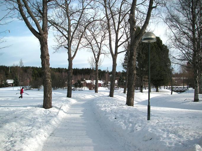 Keywords: sweden winter snow ice landscape forest trees sky clouds cold man path lane sidewalk nature outside beautiful peaceful country countryside