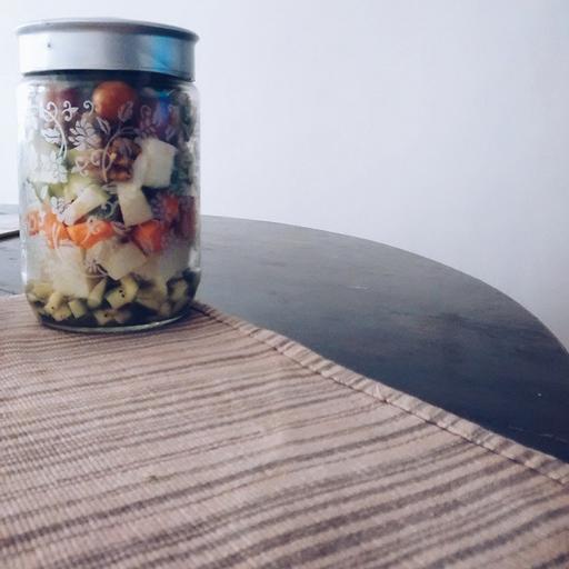 Sweet_potatoes,_carrots,_zucchini,_almonds,_spring_onions_and_cherry_tomatoes_with_a_lemon_and_vinegar_dressing._All_neatly_layered_in_a_Mason_jar._It's_great_to_have_a_mother_willing_to_experiment,_I_suspect_watching_MasterChef_Australia_daily_helps._:P.jpg (640x640)