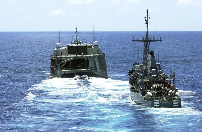 | Keywords: Swift refueling Avenger astern.jpg Pacific Ocean July 10 2004 ” The High Speed Vessel Swift HSV-2 refuels the mine warfare ship USS Avenger MCM-1 off the coast of Hawaii during exercise Rim of the Pacific RIMPAC 2004 Swift is a wave-piercing aluminum-hulled catamaran that can move at speeds greater than 45 knots With a draft allowing it to navigate in only 12 feet of water it can easily maneuver in and out of littoral environments RIMPAC is the largest international maritime exercise in the waters around the Hawaiian Islands This year ™s exercise includes seven participating nations; Australia Canada Chile Japan South Korea United Kingdom and United States RIMPAC is intended to enhance the tactical proficiency of participating units in a wide array of combined operations at sea while enhancing stability in the Pacific Rim region http //www news navy mil/view_single asp id 15984 Navy NewsStand Photo ID 040710-N-6551H-292<br />http //www news navy mil/ Navy NewsStand Home 2004-07-10 United States Navy Photographer's Mate 1st Class Michelle R Hammond PD-USGov-Military-Navy USS Avenger MCM-1 General views of HSV-2 Swift Stern views of watercraft Astern refueling fueling-at-sea RIMPAC 2004 |