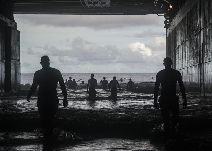Keywords: swim water fun recreation swimmers silhouettes leisure sailors ocean sea swimming military navy