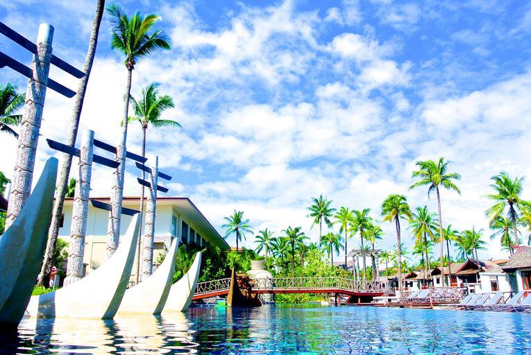 Keywords: swimming pool outdoor pool resort thailand khao lak holiday vocation summer coconut sky cloud