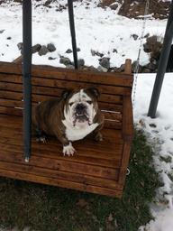 Keywords: swing winter weather fun outdoor english bulldog breed