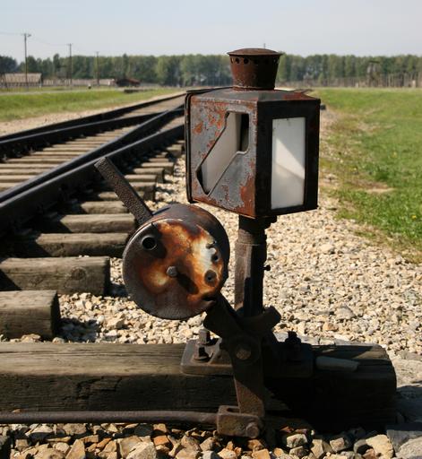 Keywords: switch point rail track points lever indicator lamp birkenau concentration camp poland oswiecim