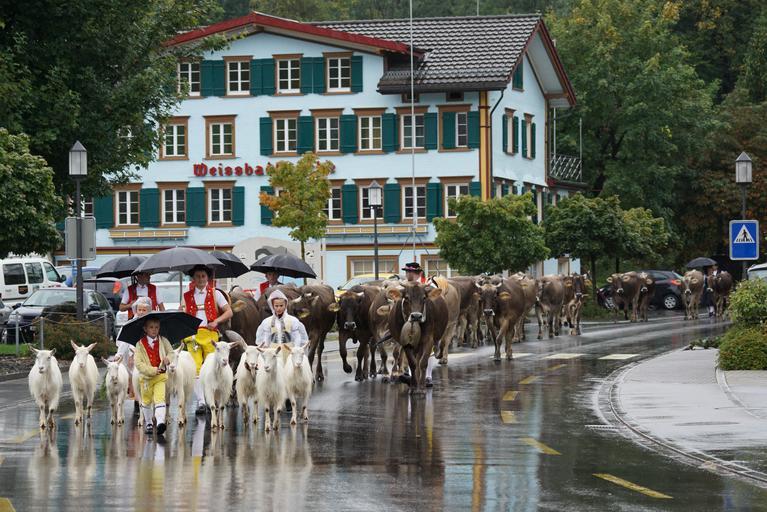 Keywords: switzerland appenzell typical tradition désalpe cows goats cattle live stoke parade