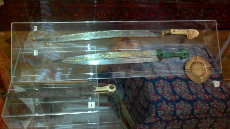 | Keywords: Sword, daggers, ashtray and tablecloth pertaining to Karabakh khanate 2.jpg en Sword daggers ashtray and tablecloth tirme belonged to Karabakh khan Museum of History of Azerbaijan Baku own work Interfase 2013-05-17 40 22 8 0547 N 49 50 24 4969 E alt 0_source exif_heading Yatagans Kindjal Metal ashtrays Tablecloths Khanate of Karabakh Department of the Khanate Period Museum of History of Azerbaijan Asian Azeri Abjab script | ||||