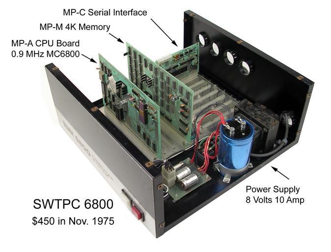 Keywords: SWTPC6800 open.jpg SWTPC 6800 Computer System introduced by Southwest Technical Products Corp of San Antonio Texas in November 1975 and sold for 450 This computer used the Motorola 6800 microprocessor and peripherals The CPU board had 128 bytes of RAM and 1024 bytes of ROM The minimal system also had a 4096 byte RAM board and a serial interface The computer was used with the SWTPC CT-1024 Computer Terminal The computer system could be expanded to 32K of RAM and 8 interface boards A floppy disk system was introduced in June 1977 The SWTPC 6800 was upgraded in 1978 and discontinued in 1980 Photo by Michael Holley September 2005 Taken with a Nikon E3200 camera under tungsten lighting Own 2006-09-22 Swtpc6800 en User Swtpc6800 Michael Holley Image SWTPC6800 Computer jpg Southwest Technical Products Corp RS-232 Photographs by User Swtpc6800 |