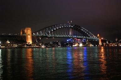 Keywords: sydney harbour bridge night reflection water city colorful architecture tourism cityscape skyline urban lights landscape scenic australia
