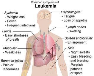 Keywords: Symptoms of leukemia.png en Common symptoms of chronic or acute leukemia See Wikipedia Leukemia Symptoms <P>To discuss image please see Talk Human body diagrams List Common symptoms of chronic or acute leukemia may include <ref name mnet>http //www medicinenet com/leukemia/page4 htm 4whatare MedicineNet com Leukemia cont Symptoms Retrieved on November 3 2009</ref><ref name mayo>http //www mayoclinic com/health/leukemia/DS00351/DSECTION symptoms mayoclinic com Leukemia --> Symptoms By Mayo Clinic staff Retrieved on November 3 2009</ref> Lymph nodes - Swelling<ref name mayo/><ref name mnet/> Systemic - Weight loss<ref name mnet/><ref name mayo/> - Fever<ref name mnet/><ref name mayo/> - Frequent infections<ref name mnet/><ref name mayo/> Muscular - Weakness<ref name mnet/><ref name mayo/> Psychological - Fatigue<ref name mnet/><ref name mayo/> - Loss of appetite<ref name mayo/> Respiratory - Easy shortness of breath<ref name mayo/> Skin - Night sweats<ref name mnet/><ref name mayo/> - Easy bleeding and bruising<ref name mnet/><ref name mayo/> - Purplish patches or spots<ref name mnet/><ref name mayo/> Spleen or liver - Enlargement<ref name mnet/><ref name mayo/> Bones or joints - Pain or tenderness<ref name mnet/><ref name mayo/> References reflist All used images are in public domain Mikael Häggström 2009-11-03 Symptoms of leukemia ru png Symptoms of leukemia-ar png Symptoms of leukemia svg Human body diagrams Leukemia PNG male shadow diagrams |