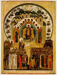 | Keywords: Synaxis of the Theotokos (Kirillo-Belozersk) 2.jpg Список экспонатов «О ТЕБЕ РАДУЕТСЯ» Около 1530 года Де ево две вст ечные шпонки паволока; темпе а 141 5 x 107 x 6 Поступила в 1929 году П оисходит из иконостаса собо а Рождества Бого одицы Фе апонтова монасты я Рестав и ована в 1964 году в ГР И П Я ославцевым КБИАХ З инв КП-2084 ДЖ-847 http //www svyatayarus ru/data/icons/74_all_creation_rejoices_in_thee/index php circa 1530 года anonymous PD-Art About you rejoices Icons in Kirillo-Belozersky Monastery Exhibition Sainte Russie Moscow 2011 - icons Files uploaded by Shakko from various sources |