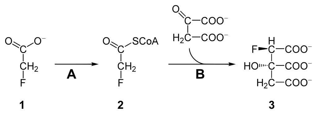 Keywords: Synthesis of fluorocitrate.svg en synthesis of fluorocitrate 1 form fluoroacetate de Bildung von Fluorcitrat 3 aus Fluoracetat 1 own Yikrazuul 2010-01-23 Citric acid cycle Sodium fluoroacetate