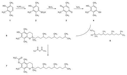 Keywords: Synthesis Tocopheryl acetate.svg en Synthesis of all rac tocopheryl acetate de Synthese von all rac Tocopherylacetat Own Yikrazuul 2008-11-15 Acetate esters Vitamin E