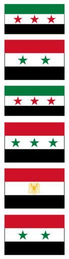 | Keywords: Syria-flag-changes.svg  Shows the flags of the modern nation-state of Syria which were adopted from top to bottom in the image in these years wikitable border cellpadding 5 - 1932 according to some sources; may not have been fully official until a few years later Image Syria-flag_1932-58_1961-63 svg - 1958 as part of the United Arab Republic Image Flag_of_United_Arab_Republic svg - 1961 return to pre-1958 flag after breakup of United Arab Republic Image Syria-flag_1932-58_1961-63 svg - 1963 readoption of Nasserist/Ba`thist symbolism Image Flag_of_Iraq_ 281963-1991 29 svg - 1971 adopted for the Federation of Arab Republics proposal Image Flag of Syria 1972 svg - 1980 return to 1958 flag now distinct from the flags of Egypt and Iraq Image Flag_of_Syria svg היסטורית ×“×’× ×™ סוריה Historical overview of Syrian flag changes 1932-2006 Own 2006 AnonMoos insignia SVG flags - historical of Syria Hawk of Quraish |