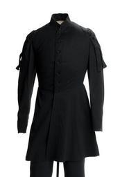 | Keywords: Syrtut till sorglivré 1800-talets mitt - Livrustkammaren - 100407.tif LSH artwork sv Syrtut av svart kläde <br/>Rock med ståndkrage livsöm enkelknäppning och smalt ryggstycke <br/>Knäppning med sex klädda knappar <br/>Sprund bak med sydda veck på var sida I vecken fickor <br/>I livsömmen två knappar <br/>I kragen hyska och hake <br/>Ärmar med sydda slag knäppt med två knappar <br/>På axlarna finns svarta band påsydda lagde i form av en rosett med bandets ändar fritt nedhängande <br/>Sorglivré för kammarpage jämför med teckning nr 57 i handskriften Konung Carl XIV Johans hof- och ordens costumer från 1844 av Adolf Ulrik Schützercrantz En reform med förändring av sorgdräkten infördes i samband med Karl XIV Johans begravning 1844 original caption Syrtut till sorglivré 1800-talets mitt <br/> Nyckelord Svart Sorgedräkt Föremålsbild 1800-tal mid other date century 19 cotton Färg brunsvart d2 - dräkt - foder material bomull - broadcloth Färg svart d1 - dräkt - yttermaterial material kläde - linen Färg svart d4 - Dräkt - passpoaler band kantning uppslag material linne size mm 50 krage size mm 660 ärm size mm 920 bak size mm 895 fram LRK Dödens teater 2015-2016 Livrustkammaren place of origin original filename lm_dig16078 51402 inventory number LRK 14946 100407 CC-BY-SA Jens Mohr <gallery caption Related objects > File Syrtut till sorglivré 1800-talets mitt - Livrustkammaren - 100411 tif LRK 14945 File Syrtut till sorglivré 1800-talets mitt - Livrustkammaren - 100409 tif LRK 14945 File Knäbyxor till sorglivré - Livrustkammaren - 100414 tif LRK 14957 File Knäbyxor till sorglivré - Livrustkammaren - 100413 tif LRK 14956 File Syrtut till sorglivré 1800-talets mitt - Livrustkammaren - 100410 tif LRK 14944 File Knäbyxor till sorglivré - Livrustkammaren - 100415 tif LRK 14961 File Syrtut till sorglivré 1800-talets mitt - Livrustkammaren - 100408 tif LRK 14947 File Knäbyxor till sorglivré - Livrustkammaren - 100412 tif LRK 14958 </gallery> Mourning clothing Black 19th century Civil uniforms of Sweden Jens Mohr Media contributed by LSH dim-with multiple size templates Media contributed by LSH 2015-11 Color images from Livrustkammaren |