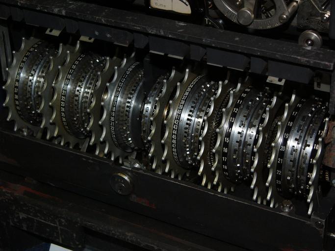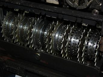 Keywords: SZ42-6-wheels.jpg The rotors of a Lorenz SZ42 cipher machine on display at Bletchley Park museum The photograph was taken by w User Matt Crypto Matt Crypto Lorenz cipher